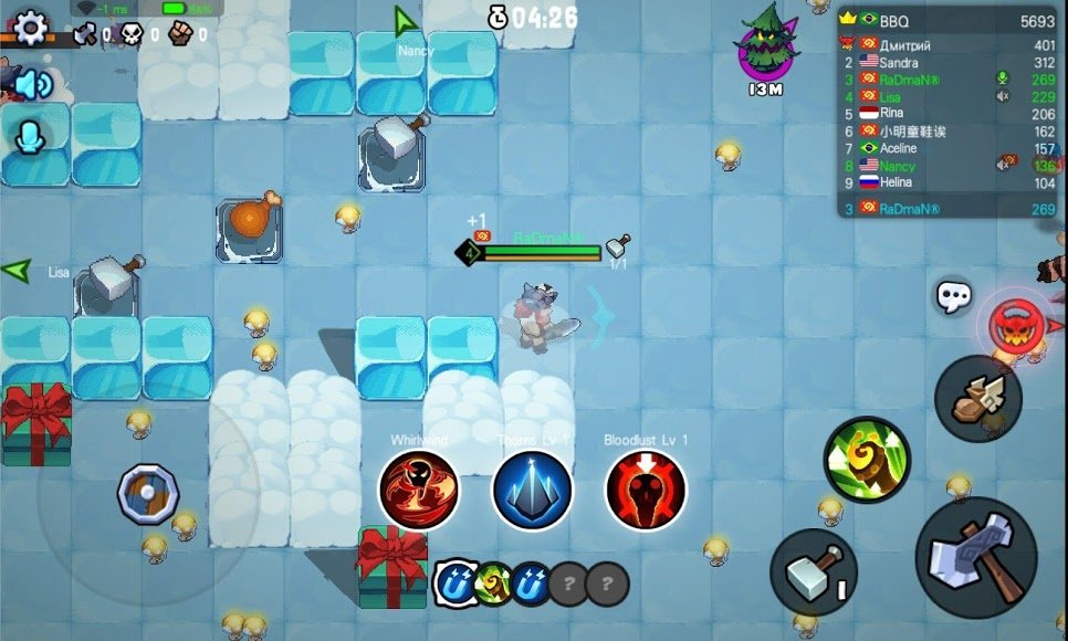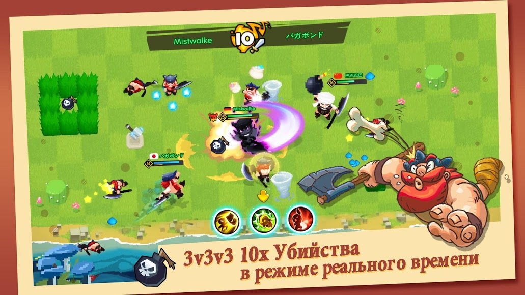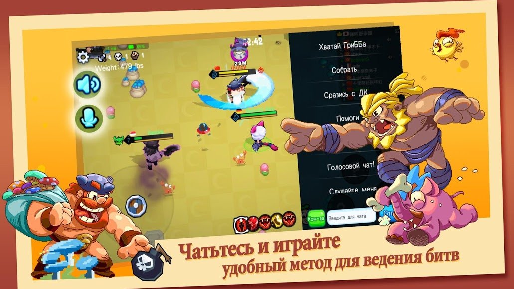 Уровни в игре представляют собой арены, на которых пользователи и их оппоненты сталкиваются в кровопролитной борьбе. Основная цель – победить всех монстров и соперников, при этом потеряв как можно меньше союзников. У всех членов поединка будут некие грибы, которые придают силы, соответственно, необходимо поедать их. Будет совсем неплохо, если вы сможете воровать эти грибы у оппонентов, так вы не только повысите свои показатели, но и лишите варваров возможности восстановить силы.